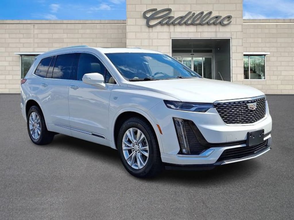 Cadillac Certified Pre-Owned Certified, 18" Multi-Spoke Alloy Wheels, 3.47 Axle Ratio, 3rd row seats: split-bench, 4-Wheel Disc Brakes, 8 Speakers, ABS brakes, Air Conditioning, All-Weather Floor Mats, All-Weather Integrated Cargo Liner (LPO), Alloy wheels, AM/FM radio: SiriusXM with 360L, Audio memory, Auto High-beam Headlights, Auto-dimming door mirrors, Auto-dimming Rear-View mirror, Automatic Stop/Start w/Disable, Automatic temperature control, Bose Premium 8-Speaker Audio System, Brake assist, Bumpers: body-color, Compass, Delay-off headlights, Driver & Front Passenger Heated Seats, Driver door bin, Driver vanity mirror, Dual front impact airbags, Dual front side impact airbags, Electronic Stability Control, Emergency communication system: OnStar and Cadillac connected services capable, Four wheel independent suspension, Front anti-roll bar, Front Bucket Seats, Front Center Armrest, Front dual zone A/C, Front License Plate Bracket, Front reading lights, Fully automatic headlights, Garage door transmitter, Heated door mirrors, Heated front seats, Illuminated entry, Inteluxe Seating Surfaces, Interior Protection Package (LPO), Knee airbag, Leather steering wheel, Low tire pressure warning, Luxury Package 1SB, Memory seat, Occupant sensing airbag, Outside temperature display, Overhead airbag, Overhead console, Panic alarm, Passenger door bin, Passenger vanity mirror, Power door mirrors, Power driver seat, Power Liftgate, Power moonroof: UltraView, Power passenger seat, Power steering, Power windows, Radio data system, Radio: Cadillac User Experience AM/FM Stereo, Rear air conditioning, Rear anti-roll bar, Rear reading lights, Rear seat center armrest, Rear window defroster, Rear window wiper, Remote keyless entry, Ride & Handling Suspension, Roof rack: rails only, SiriusXM w/360L, Speed control, Speed-sensing steering, Split folding rear seat, Spoiler, Steering wheel mounted audio controls, Tachometer, Teen Driver, Telescoping steering wheel, Tilt steering wheel, Traction control, Trip computer, Turn signal indicator mirrors, Variably intermittent wipers, Voltmeter. Clean CARFAX. CARFAX One-Owner. Crystal White Tricoat 2022 Cadillac XT6 Luxury AWD 9-Speed Automatic 2.0L Turbocharged