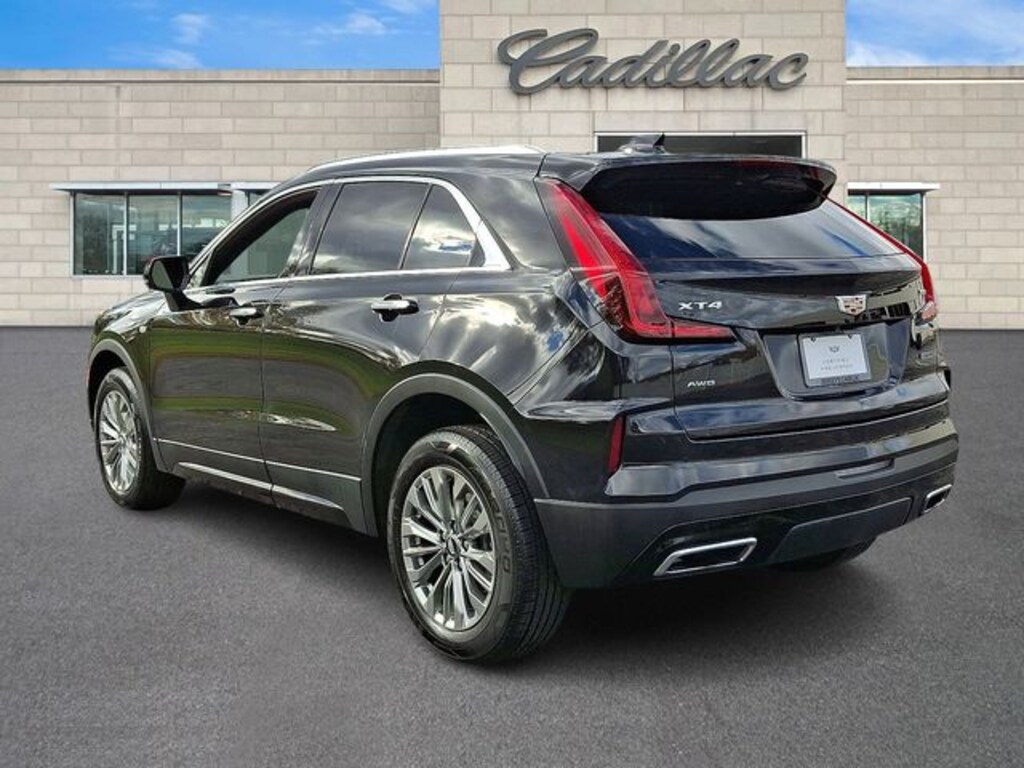 Cadillac Certified Pre-Owned Certified, 3.47 Axle Ratio, 4-Way Driver Seat Power Lumbar Control, 4-Way Passenger Seat Power Lumbar Control, 4-Wheel Disc Brakes, 6-Way Power Passenger Seat Adjuster, 7 Speakers, 7-Speaker Audio System, 8-Way Power Driver Seat Adjuster, ABS brakes, Air Conditioning, Alloy wheels, AM/FM radio: SiriusXM with 360L, Apple CarPlay/Android Auto, Auto High-beam Headlights, Auto-dimming door mirrors, Auto-Dimming Inside Rear-View Mirror, Auto-dimming Rear-View mirror, Automatic Emergency Braking, Automatic temperature control, Brake assist, Bumpers: body-color, Compass, Delay-off headlights, Deleted 3 Years of OnStar Remote Access, Driver door bin, Driver vanity mirror, Dual front impact airbags, Dual front side impact airbags, Electronic Cruise Control w/Set & Resume Speed, Electronic Stability Control, Emergency communication system: OnStar and Cadillac connected services capable, Four wheel independent suspension, Front anti-roll bar, Front Bucket Seats, Front Center Armrest, Front dual zone A/C, Front License Plate Bracket, Front reading lights, Fully automatic headlights, Garage door transmitter, HD Rear Vision Camera, Heated door mirrors, Illuminated entry, Knee airbag, Leather Seating Surfaces, Leather steering wheel, Low tire pressure warning, Manual Rake & Telescopic Steering Column, Memory seat, Navigation system: Google Automotive Services Capable, Occupant sensing airbag, Outside temperature display, Overhead airbag, Overhead console, Panic alarm, Passenger door bin, Passenger vanity mirror, Power door mirrors, Power driver seat, Power Liftgate, Power passenger seat, Power steering, Power windows, Preferred Equipment Group 1SE, Radio data system, Radio: Google Built-In Infotainment Experience, Rain sensing wipers, Rear anti-roll bar, Rear reading lights, Rear seat center armrest, Rear window defroster, Rear window wiper, Remote keyless entry, Road Emergency Tool Kit, Roof rack: rails only, Security system, SiriusXM w/360L, Speed control, Speed-sensing steering, Split folding rear seat, Spoiler, Standard Suspension, Steering wheel mounted audio controls, Tachometer, Telescoping steering wheel, Tilt steering wheel, Traction control, Trip computer, Turn signal indicator mirrors, Variably intermittent wipers, Voltmeter, Wheels: 18" Tri 5-Spoke Pearl Nickel Finish Alloy, Wireless Apple CarPlay/Wireless Android Auto. Clean CARFAX. CARFAX One-Owner. Stellar Black Metallic 2024 Cadillac XT4 Premium Luxury AWD 9-Speed Automatic 2.0L I4 Turbocharged