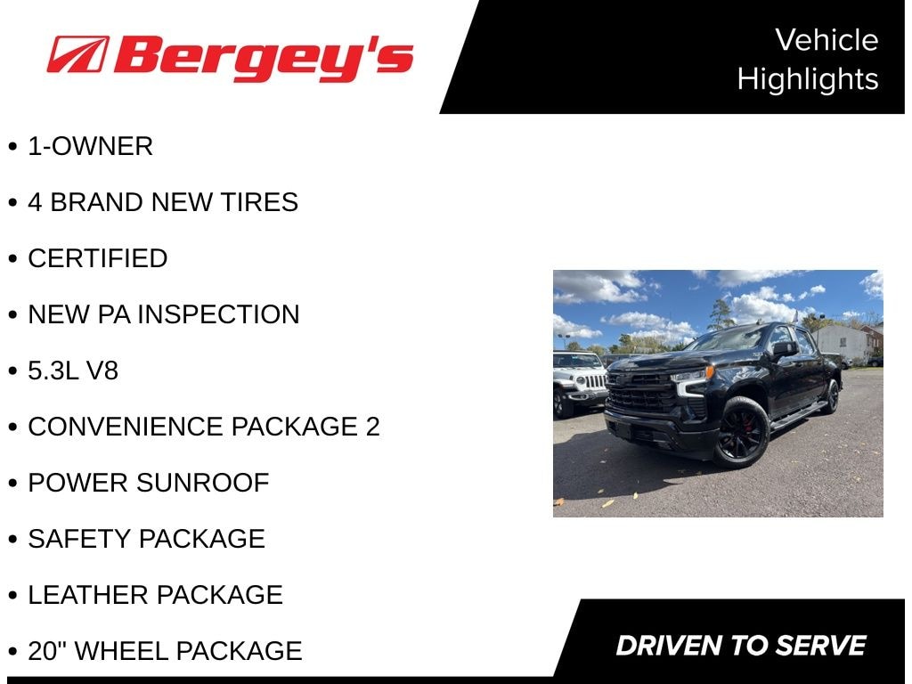 Certified. Black 2022 Chevrolet Silverado 1500 RST 4WD 10-Speed Automatic EcoTec3 5.3L V8 1-OWNER, 4 BRAND NEW TIRES, CERTIFIED, NEW PA INSPECTION, 5.3L V8, CONVENIENCE PACKAGE 2, POWER SUNROOF, SAFETY PACKAGE, LEATHER PACKAGE, 20" WHEEL PACKAGE, FRONT BUCKET SEATS PACKAGE, MULTIFLEX TAILGATE, 10-Speed Automatic, 4WD, Black Leather.
