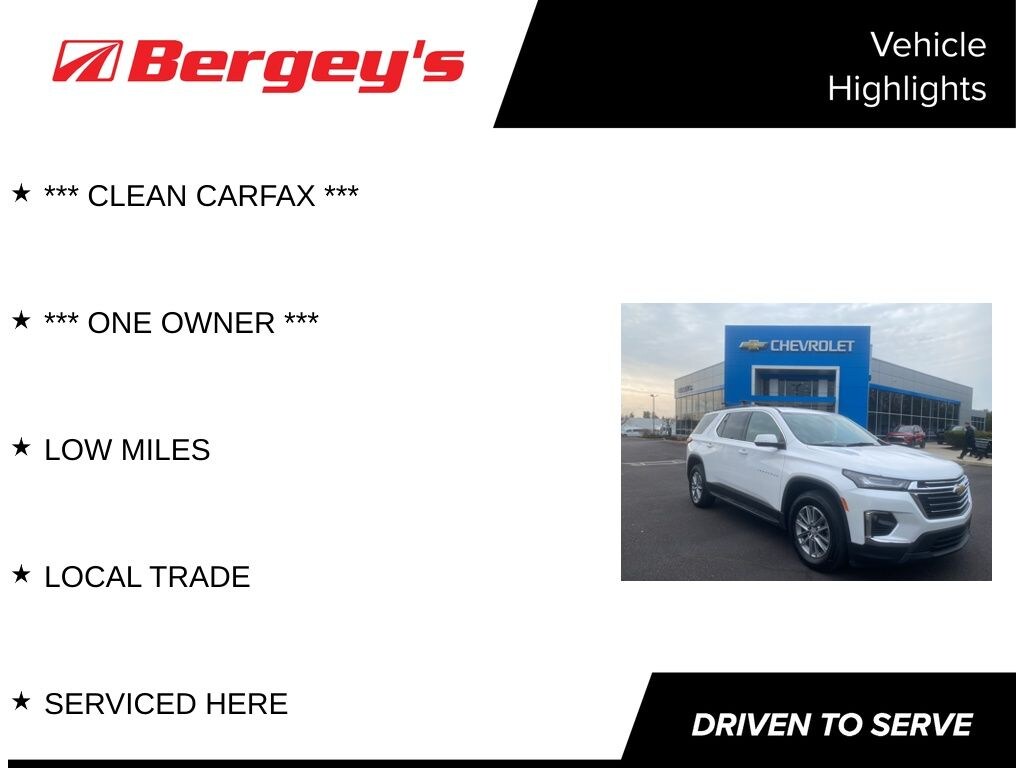 Step up to full-size comfort and capability with this 2023 Chevrolet Traverse LT Leather, proudly offered at Bergeys Chevrolet in Colmar, PA the smart alternative to shopping in Doylestown, Sellersville, or Quakertown. This premium LT Leather model elevates every drive with its refined leather-appointed interior, advanced Chevy Safety Assist features, powerful V6 performance, and spacious three-row seating built for todays busy families. Whether youre upgrading for daily commuting, weekend road trips, or growing passenger needs, the Traverse LT delivers the perfect balance of luxury, technology, and practicality. Skip the competition and experience unmatched selection and customer care at Bergeys Chevrolet in Colmar, where your next Traverse is ready to impress.