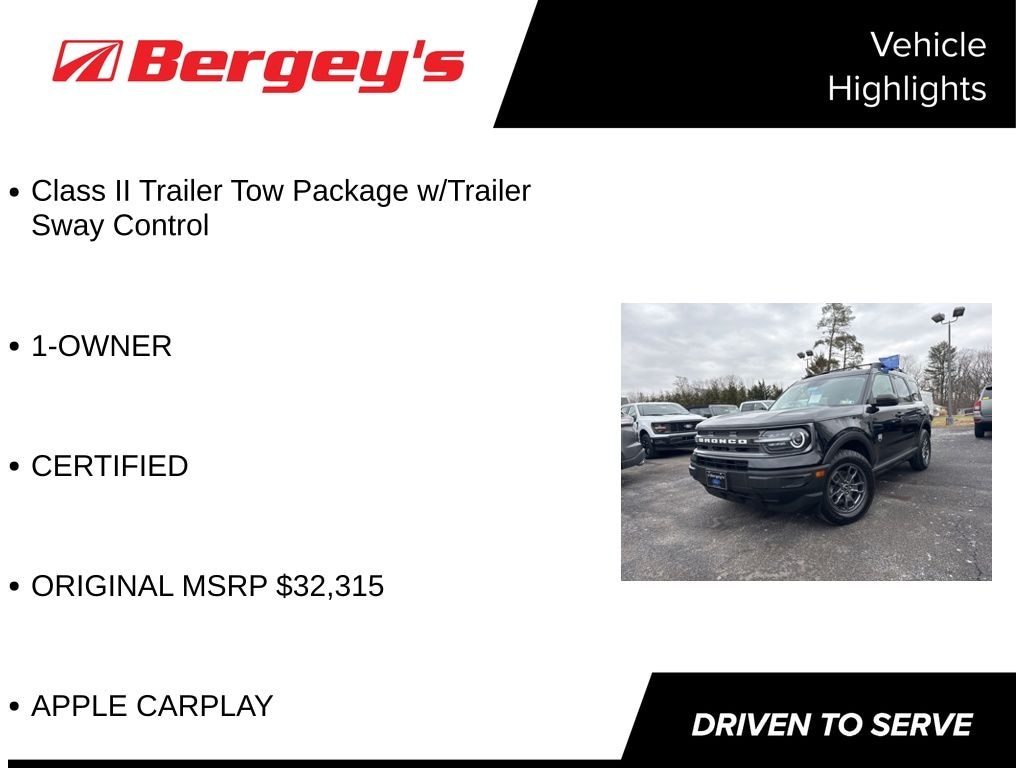 Certified 2022 Ford Bronco Sport Big Bend - Trailer Tow Package, Rear View Camera, CarPlay SUV Photo 1 of 33