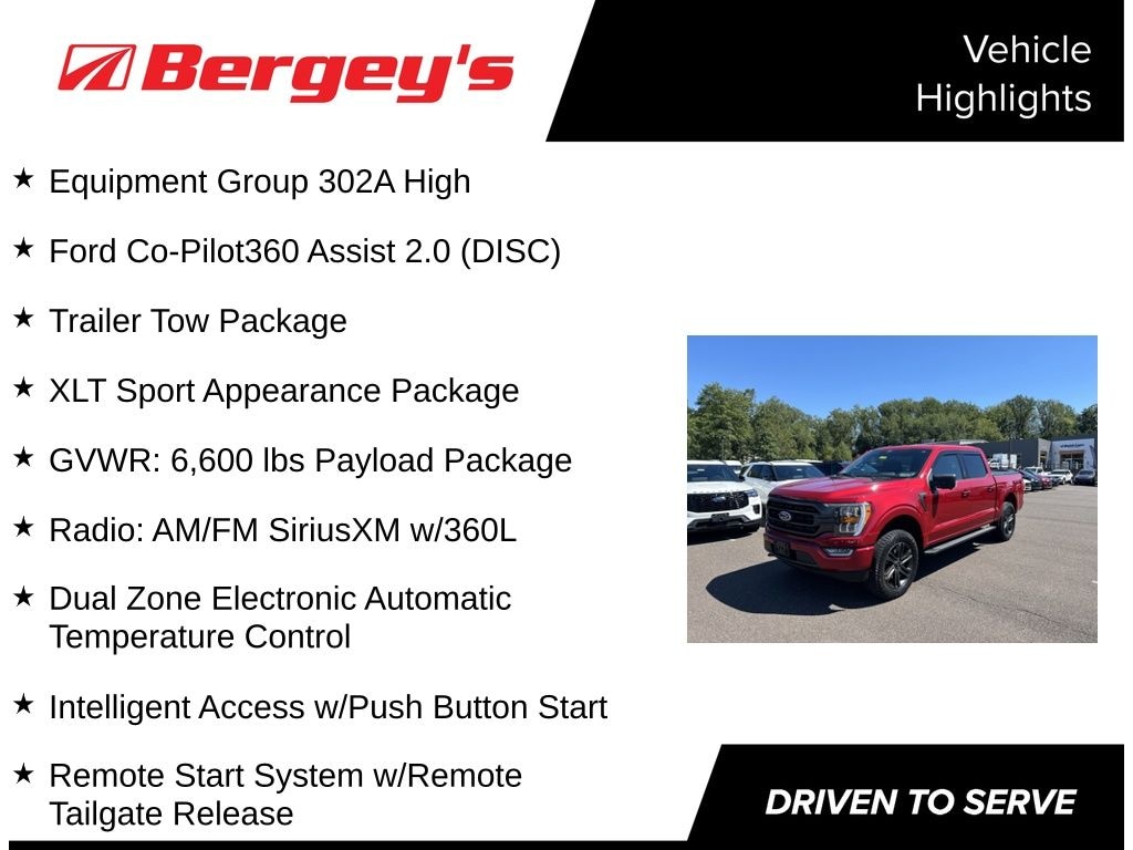The high content 302A package offers dual power heated seats, power pedals, leather steering wheel, remote start, LED headlamps, fog lamps, approach lamps and mirror mounted spotlights and a Class IV trailer hitch. Aggressive styling is enhanced with the XLT Sport Package that offers 20 Sport Alloy Wheels with newer Pirelli Scorpion tires, running boards, body color accents and grille, along with Sport Bucket Seats and a center console.