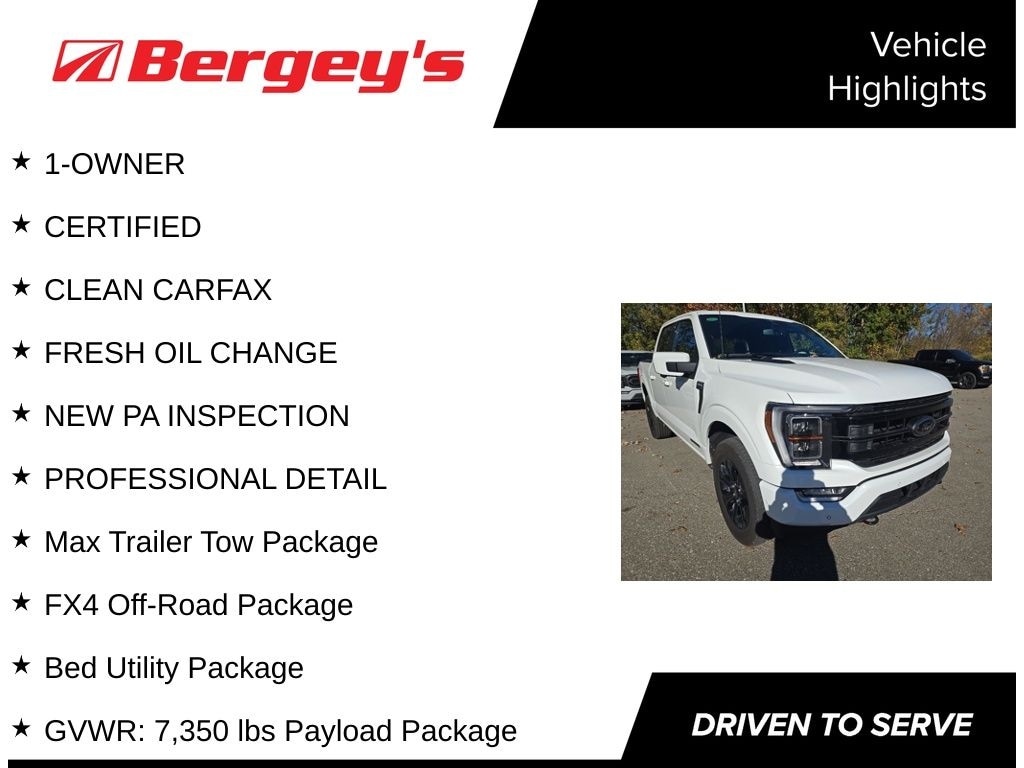 You'll be impressed by all the features of this Certified F-150 Platinum FX4 Hybrid with Navigation and a Moonroof. This stunning One Owner truck has a clean CarFax with a comprehensive maintenance history. Powered by Fords premier 3.5L PowerBoost Full Hybrid engine, rated 430 HP and an incredible 570 lb-ft of torque, along with shift on the fly 4WD, and the capable FX4 Off-Road Package, you'll be ready for any road or off road - situation. The Max Trailer Tow Package offers impressive towing capabilities.