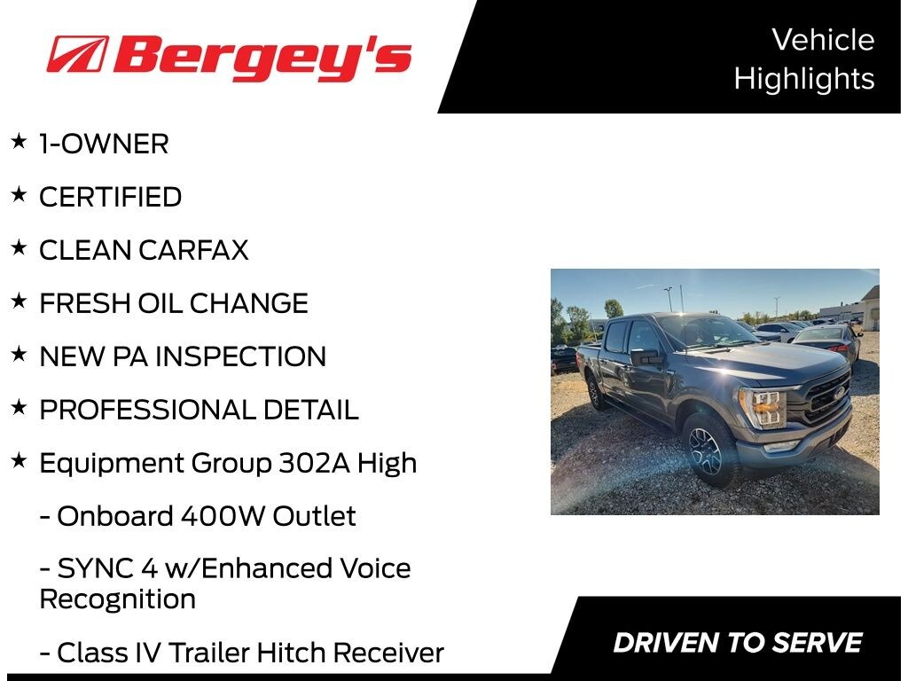 Dramatic styling and impressive capabilities are yours in this Certified, One Owner F-150 XLT 4WD SPORT. The low mileage truck has a clean CarFax. Powered by the premium 2.7L EcoBoost V6 engine that produces 325 HP and 400 lb-ft of torque which makes it ideal for towing and carrying all of your passengers and their gear. The 10 speed transmission provides crisp shifts that enhance performance and economy.