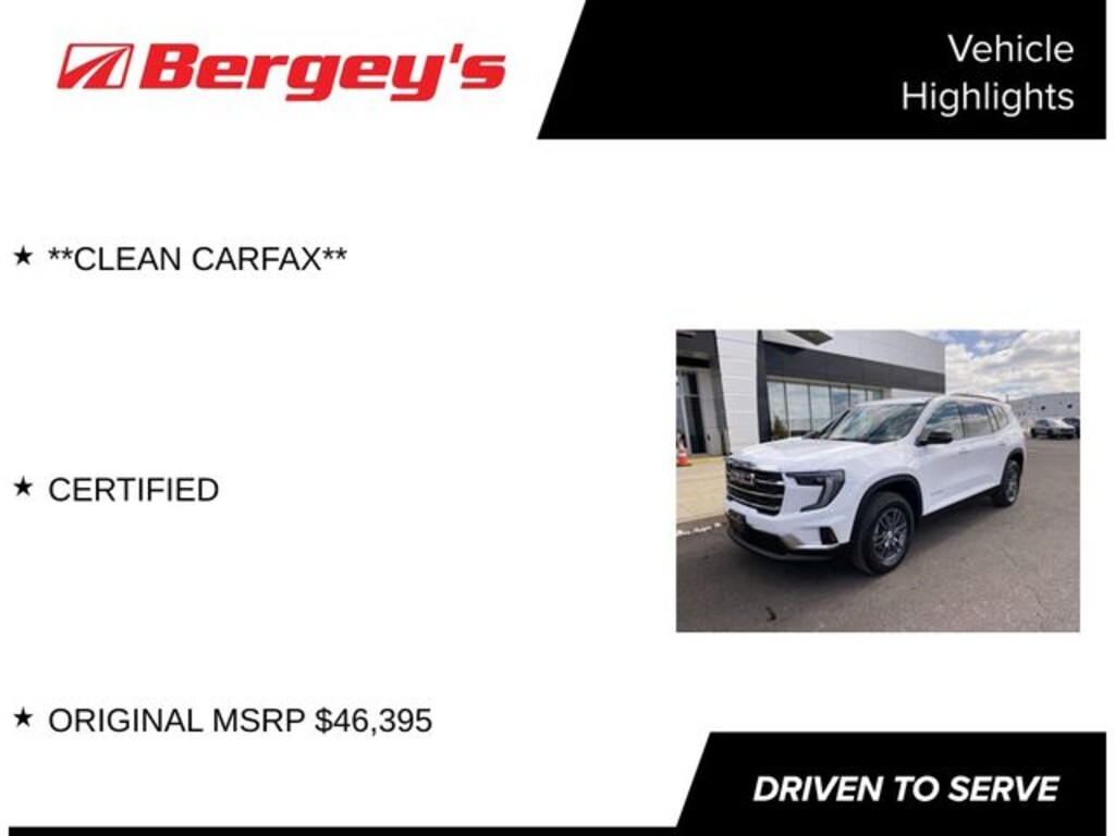 This 2025 GMC Acadia Elevation is a standout choice for the modern family. With its impressive list of features, including - **CLEAN CARFAX**, CERTIFIED, and an ORIGINAL MSRP of $46,395 - this Acadia is a remarkable value.