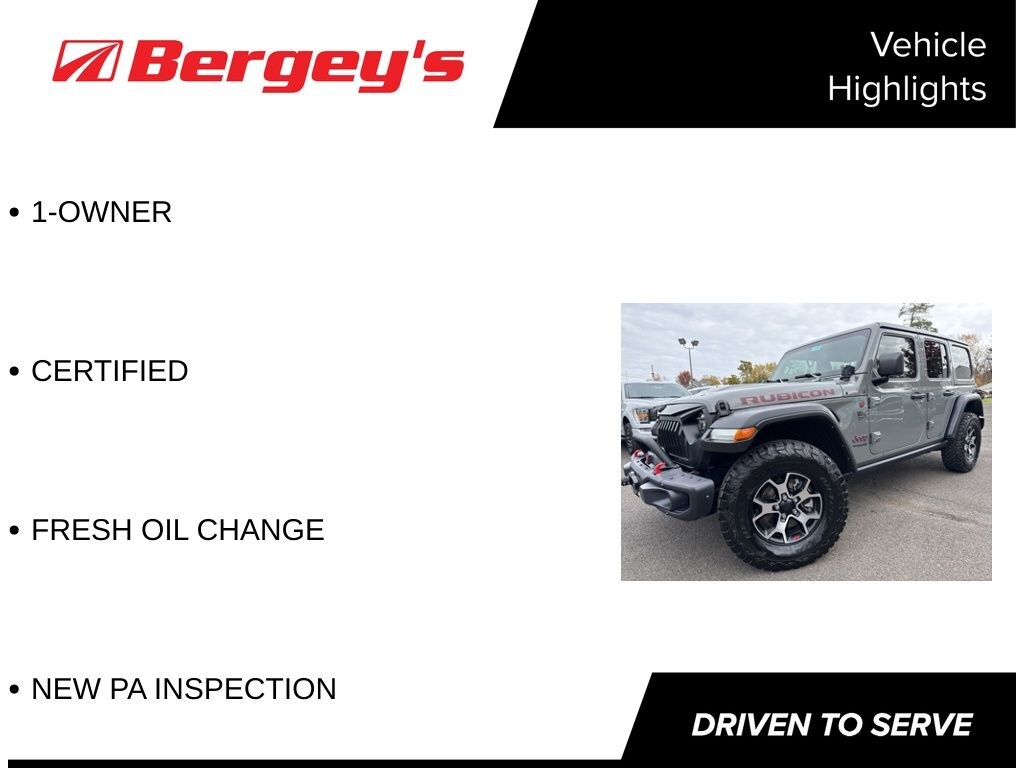 Certified. Sting-Gray Clearcoat 2021 Jeep Wrangler Unlimited Rubicon 4WD 8-Speed Automatic 3.6L V6 24V VVT 1-OWNER, CERTIFIED, FRESH OIL CHANGE, NEW PA INSPECTION.