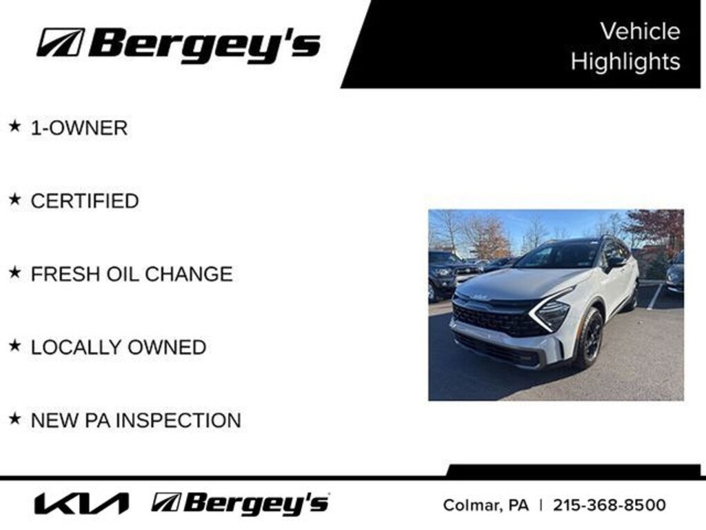 Certified. Wolf Gray/Ebony Black Roof 2023 Kia Sportage X-Pro Prestige AWD 8-Speed Automatic I4 1-OWNER, CERTIFIED, FRESH OIL CHANGE, LOCALLY OWNED, NEW PA INSPECTION, PROFESSIONAL DETAIL, AWD.