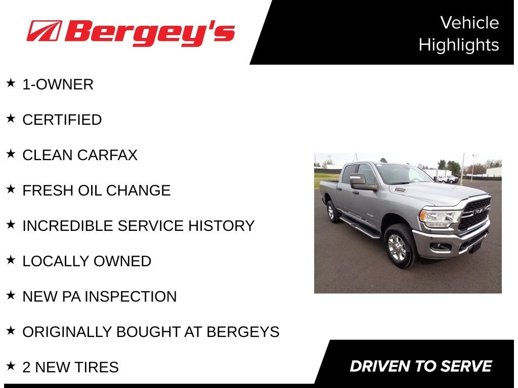 Clean CARFAX. CARFAX One-Owner. Certified. Billet Silver Metallic Clearcoat 2024 Ram 2500 Big Horn 4WD 8-Speed Automatic 6.4L V8 1-OWNER, CERTIFIED, CLEAN CARFAX, FRESH OIL CHANGE, INCREDIBLE SERVICE HISTORY, LOCALLY OWNED, NEW PA INSPECTION, ORIGINALLY BOUGHT AT BERGEYS, 2 NEW TIRES.