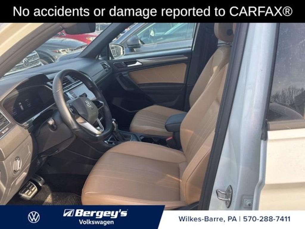 Certified. Oryx White Pearl 2022 Volkswagen Tiguan 2.0T SE R-Line Black AWD 8-Speed Automatic with Tiptronic 2.0L TSI DOHC 1-OWNER, CERTIFIED, CLEAN CARFAX, FRESH OIL CHANGE, LOCALLY OWNED, NEW REAR BRAKES, PROFESSIONAL DETAIL, AWD.