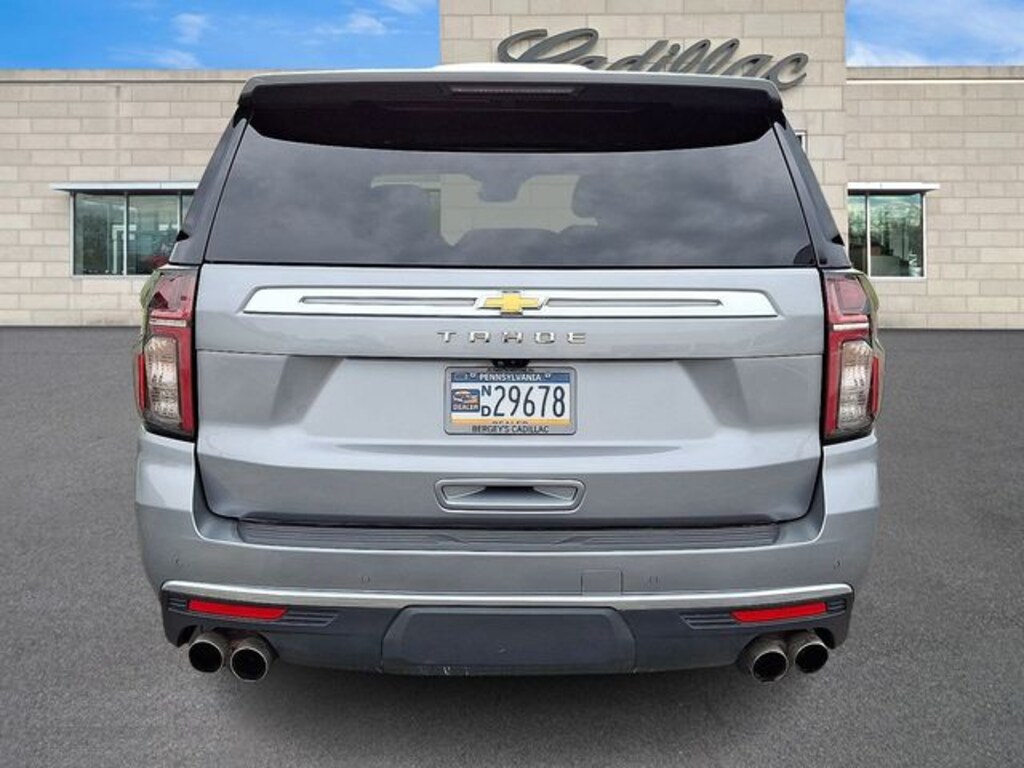 4WD, Jet Black/Mocha Leather, 10 Speakers, 15" Diagonal Multi-Color Head-Up Display, 1st & 2nd Row Color-Keyed Carpeted Floor Mats, 2-Speed Active Electronic AutoTrac Transfer Case, 3.23 Rear Axle Ratio, 3rd Row 60/40 Power-Folding Split-Bench Seat, 3rd row seats: split-bench, 4-Wheel Disc Brakes, ABS brakes, Adaptive Cruise Control, Adaptive suspension, Air Conditioning, Alloy wheels, AM/FM radio: SiriusXM with 360L, Apple CarPlay/Android Auto, Auto High-beam Headlights, Auto-dimming door mirrors, Auto-dimming Rear-View mirror, Auto-leveling suspension, Automatic Emergency Braking, Automatic temperature control, Bose 10-Speaker Centerpoint Surround Audio Sys Ft, Brake assist, Bright Front & Rear Door Sill Plates, Bumpers: body-color, Chrome Door Handles w/Body-Color Strip, Color-Keyed Carpeting Floor Covering, Compass, Delay-off headlights, Driver & Front Outboard Passenger Airbags, Driver door bin, Driver vanity mirror, Dual Exhaust System, Dual front impact airbags, Dual front side impact airbags, Dual-Pane Power Panoramic Sunroof, Electronic Cruise Control w/Set & Resume Speed, Electronic Stability Control, Emergency communication system: OnStar and Chevrolet connected services capable, Enhanced Automatic Emergency Braking, Enhanced Driver Information Center, Exterior Parking Camera Rear, Floor Console, Four wheel independent suspension, Front anti-roll bar, Front Bucket Seats, Front Center Armrest, Front dual zone A/C, Front High-Back Reclining Bucket Seats, Front reading lights, Fully automatic headlights, Garage door transmitter, Hands-Free Rear Power Programmable Liftgate, HD Surround Vision, Heads-Up Display, Heated & Ventilated Driver & Front Passenger Seats, Heated 2nd Row Outboard Seats, Heated door mirrors, Heated Driver & Front Passenger Seats, Heated front seats, Heated rear seats, Heated Steering Wheel, Heated steering wheel, Hill Descent Control, Illuminated entry, Infotainment Display, Inside Rearview Auto-Dimming Rear Camera Mirror, Lane Change Alert w/Side Blind Zone Alert, LED Daytime Running Lamps, Low tire pressure warning, Magnetic Ride Control Suspension, Memory seat, Memory Settings, Navigation System, Not Equipped w/4-Way Driver & Fr Pass Pwr Lumbar, Not Equipped w/Cruise Control & Auto Braking, Occupant sensing airbag, Outside Heated Power-Adjustable Mirrors, Outside temperature display, Overhead airbag, Overhead console, Panic alarm, Passenger door bin, Passenger vanity mirror, Perforated Leather Seat Trim, Power door mirrors, Power driver seat, Power Liftgate, Power passenger seat, Power Release 2nd Row Bucket Seats, Power steering, Power Tilt & Telescopic Steering Column, Power windows, Power-Retractable Assist Steps, Preferred Equipment Group 3LZ, Premium audio system: Chevrolet Infotainment 3 Premium, Radio: Chevrolet Infotainment 3 Premium System, Rain sensing wipers, Rear air conditioning, Rear anti-roll bar, Rear Camera Mirror Washer, Rear Cross Traffic Alert, Rear Pedestrian Alert, Rear reading lights, Rear window defroster, Rear window wiper, Remote keyless entry, Remote Start, Roof rack: rails only, Safety Alert Seat, Security system, Set of 4 Wheel Locks (LPO), SiriusXM Radio w/360L, Speed control, Speed-sensing steering, Split folding rear seat, Spoiler, Steering wheel memory, Steering wheel mounted audio controls, Tachometer, Telescoping steering wheel, Tilt steering wheel, Traction control, Trip computer, Turn signal indicator mirrors, Universal Home Remote, Variably intermittent wipers, Ventilated front seats, Voltmeter, Wheels: 22" x 9" Sterling Silver Premium Painted, Wireless Charging, Wrapped Steering Wheel, 4WD, Jet Black/Mocha Leather. Clean CARFAX. CARFAX One-Owner. Sterling Gray Metallic 2023 Chevrolet Tahoe High Country 4WD 10-Speed Automatic with Overdrive EcoTec3 6.2L V8