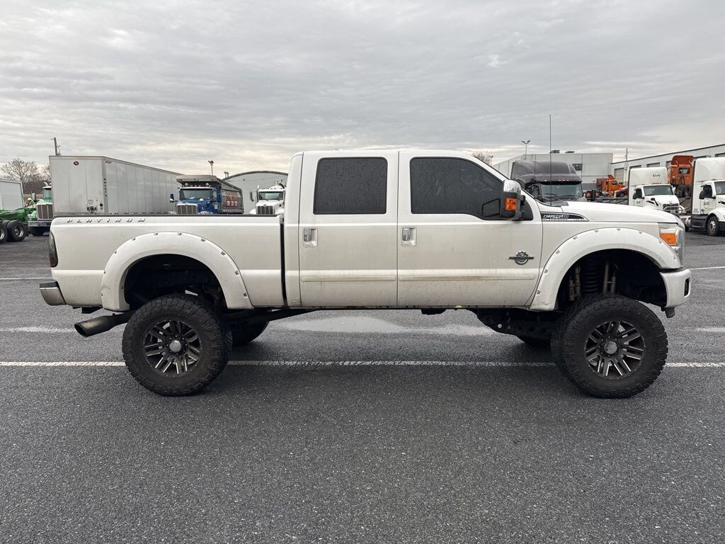 White Platinum Clearcoat Metallic 4D Crew Cab 2014 Ford F-250SD Platinum 4WD TorqShift 6-Speed Automatic with Overdrive Power Stroke 6.7L V8 DI 32V OHV Turbodiesel CLEAN CARFAX, FRESH OIL CHANGE, LOCALLY OWNED, NEW PA INSPECTION, PROFESSIONAL DETAIL, NEW ARRIVAL!! TRADED RIGHT HERE AT BERGEY'S!!, THIS LIFTED TRUCK IS A MUST SEE!!, 4WD, 20" Platinum Cast Aluminum Wheels, 6" Angular Chrome Step Bars, Body-Color Front & Rear Bumpers, Bright Chrome Door & Tailgate Handles, Chrome Exhaust Tip, Chrome Skull Caps on PowerScope Mirrors, Colored Front & Rear Rancho Branded Shocks, Console, Door Trim, Electronic Locking w/3.55 Axle Ratio, FX4 Off-Road Package, GVWR: 10,000 lb Payload Package, Hill Descent Control, Memory Power Adjustable Pedals, Navigation System w/HD & Satellite Broadcast, Order Code 608A, Platinum Package, Power Moonroof, PowerScope Trailer-Tow Mirrors, Premium Leather-Wrapped/Wood Steering Wheel, Remote Start System, Tailgate Step & Handle, Unique Platinum Leather 40/Console/40 Seats, Unique Satin Chrome Grille, Universal Garage Door Opener.