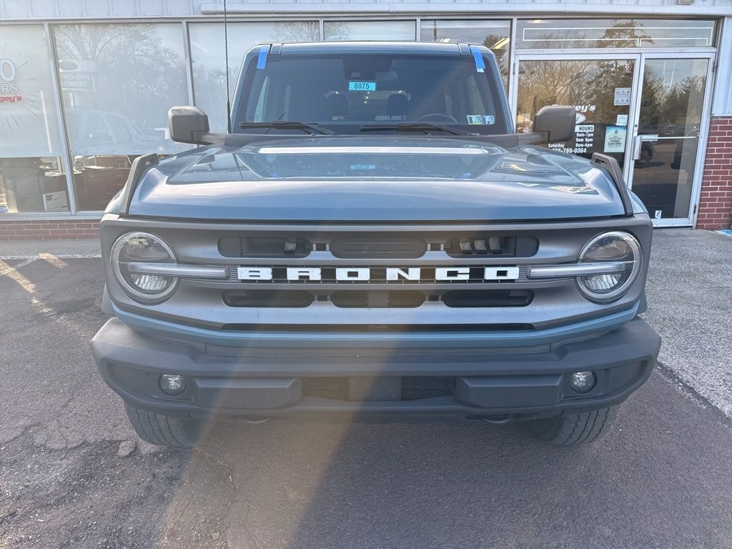 The SYNC4 Audio System has 7 speakers including a subwoofer, an 8 inch LCD Capacitive Touchscreen with Swipe Capability, Wireless Phone Connection, Cloud Connected, AppLink, 911 Assist, Wireless Apple CarPlay and Android Auto Compatibility. Outside are a Carbonized Gray Painted Grille with White BRONCO Lettering, LED Fog Lamps, Privacy Glass Second Row and Swing Gate, Tires P255/75R17 All-Terrain (A/T) (32), Full size spare tire with TPMS and 17 inch Carbonized Gray-Painted Aluminum Alloy Wheels.