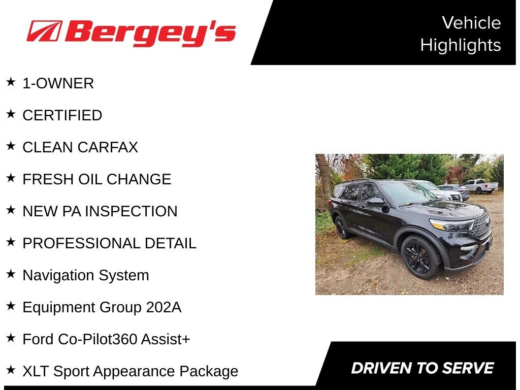 Clean CARFAX. CARFAX One-Owner. Certified. Agate Black Metallic 2022 Ford Explorer XLT REAR ENTERTAINMENT 4WD 10-Speed Automatic 2.3L EcoBoost I-4 1-OWNER, CERTIFIED, CLEAN CARFAX, FRESH OIL CHANGE, NEW PA INSPECTION, PROFESSIONAL DETAIL, Explorer XLT REAR ENTERTAINMENT, 2.3L EcoBoost I-4, 10-Speed Automatic, 4WD, 1st Row Heated Seats, Acoustic-Laminated Front Side Windows, ActiveX Captain's Chairs, Alloy wheels, Auto High-beam Headlights, Equipment Group 202A, Evasive Steering Assist, Exterior Parking Camera Rear, Ford Co-Pilot360 Assist+, Heated Steering Wheel, Intelligent Adaptive Cruise Control, LED Fog Lamps, Navigation System, Power driver seat, Power Liftgate, Remote Start System, SecuriCode Keyless Entry Keypad, Speed Sign Recognition, SYNC 3 Communications & Entertainment System, SYNC 3/Apple CarPlay/Android Auto, Twin Panel Moonroof, Voice-Activated Touchscreen Navigation System, Wheels: 20" 10-Spoke Carbonized Gray-Painted, XLT Sport Appearance Package.