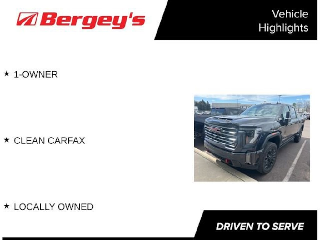 Certified Vehicle!This 2024 GMC Sierra 2500HD AT4 is a standout choice for those seeking a capable and well-equipped heavy-duty pickup. Boasting a remarkable list of features, this vehicle is poised to exceed your expectations.- 1-OWNER- CLEAN CARFAX- LOCALLY OWNED- ASSIST STEPS, POWER RETRACTABLE, BLACK with LED lighting- SUNROOF, POWER- Titanium Rush Metallic exterior- AT4 PREFERRED PACKAGE- LPO, 22 GLOSS BLACK ALUMINUM WHEELS- SNOW PLOW PREP/CAMPER PACKAGE- TIRES, LT265/60R22 E ALL-TERRAIN BLACKWALLThis Sierra 2500HD AT4 is a true off-road champion, ready to tackle any challenge with its powerful 6.6L V8 engine and 4WD capability. The AT4 package adds a host of premium features, including an advanced off-road suspension, skid plates, and a locking rear differential, ensuring you can conquer even the most rugged terrain with confidence.Inside, the Sierra 2500HD AT4 offers a refined and well-appointed cabin, with premium leather-appointed seats, a Bose premium sound system, and a host of advanced technology features. The power-retractable assist steps and the spacious, versatile bed make this truck a practical and convenient choice for both work and play.Certified Vehicle!This Sierra 2500HD AT4 has been meticulously inspected and certified to meet the highest standards of quality and reliability. You can trust that this vehicle has been thoroughly checked and is ready to provide you with years of dependable service.Experience the exceptional capability and uncompromising style of the 2024 GMC Sierra 2500HD AT4. Visit our showroom today and let us demonstrate how this remarkable truck can transform your driving experience.