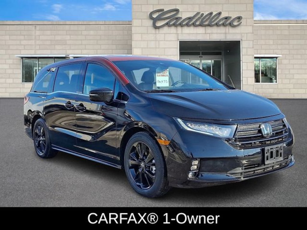 Power Liftgate, Power moonroof, 3.61 Axle Ratio, 3rd row seats: split-bench, 4-Wheel Disc Brakes, 7 Speakers, A/V remote: CabinControl, ABS brakes, Adaptive Cruise Control: Adaptive Cruise Control (ACC) with Low-Speed Follow, Air Conditioning, Alloy wheels, AM/FM radio: SiriusXM, Anti-whiplash front head restraints, Apple CarPlay/Android Auto, Auto High-beam Headlights, Auto-dimming Rear-View mirror, Automatic temperature control, Blind Spot Information (BSI) System warning, Brake assist, Bumpers: body-color, Delay-off headlights, Driver door bin, Driver vanity mirror, Driver's Seat Mounted Armrest, Dual front impact airbags, Dual front side impact airbags, Electronic Stability Control, Exterior Parking Camera Rear, Four wheel independent suspension, Front anti-roll bar, Front Bucket Seats, Front dual zone A/C, Front fog lights, Front reading lights, Fully automatic headlights, Garage door transmitter: HomeLink, Heated door mirrors, Heated Front Bucket Seats, Heated front seats, Illuminated entry, Knee airbag, Lane departure: Lane Keeping Assist System (LKAS) active, Leather Seat Trim, Leather steering wheel, Low tire pressure warning, Memory seat, Occupant sensing airbag, Outside temperature display, Overhead airbag, Overhead console, Panic alarm, Passenger door bin, Passenger seat mounted armrest, Passenger vanity mirror, Power door mirrors, Power driver seat, Power passenger seat, Power steering, Power windows, Radio data system, Radio: 160-Watt AM/FM/HD/SiriusXM Audio System, Rear air conditioning, Rear anti-roll bar, Rear reading lights, Rear seat center armrest, Rear window defroster, Rear window wiper, Reclining 3rd row seat, Remote keyless entry, Security system, Speed control, Speed-sensing steering, Speed-Sensitive Wipers, Split folding rear seat, Spoiler, Steering wheel mounted audio controls, Tachometer, Telescoping steering wheel, Tilt steering wheel, Traction control, Trip computer, Turn signal indicator mirrors, Variably intermittent wipers, Wheels: 19" Gloss Black Alloy, 1-OWNER, CLEAN CARFAX, LOCALLY OWNED, NEW PA INSPECTION, PROFESSIONAL DETAIL, Power Liftgate, Power moonroof. Clean CARFAX. CARFAX One-Owner. Maroon 2024 Honda Odyssey Sport FWD 10-Speed Automatic 3.5L V6 SOHC i-VTEC 24V