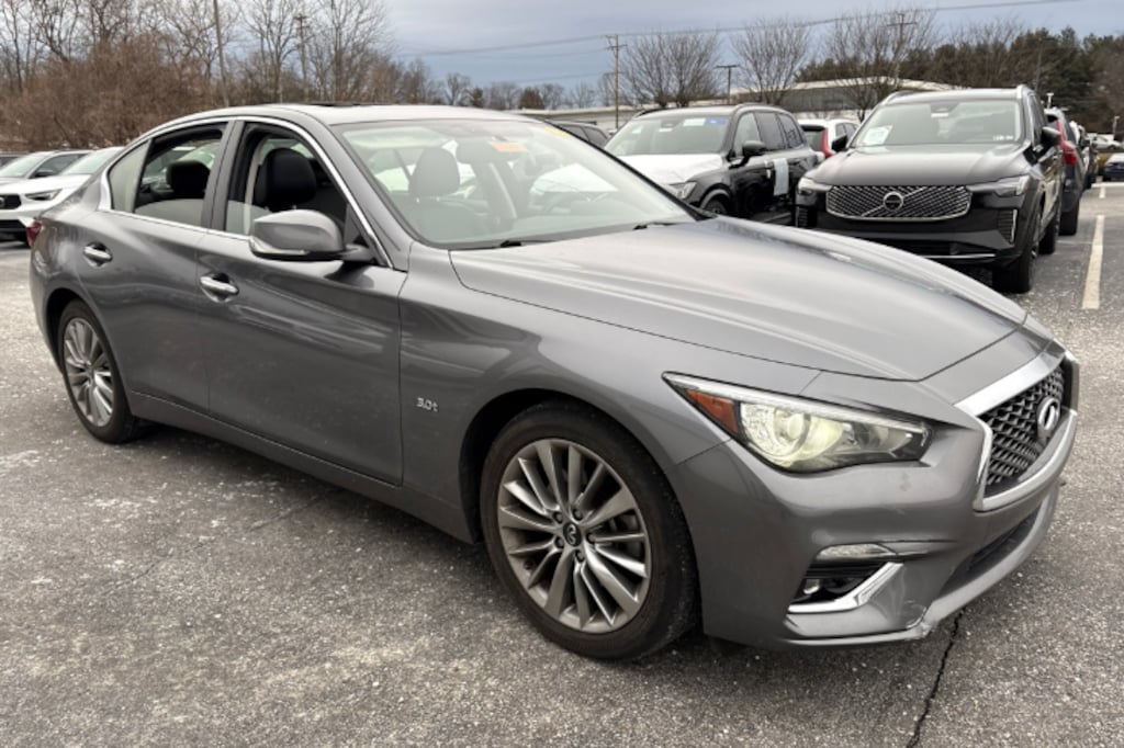You don't need to compromise luxury for performance or versatility with this Certified Infiniti Q50 3.0t Luxe AWD. This Low Mileage, local trade-in has a clean CarFax. The smooth 3.0L V6 twin turbocharged engine generates 300 HP and 295 lb-ft of torque and is mated to an Intelligent AWD system. Stunning polished 18 inch alloy wheels add distinctive style.