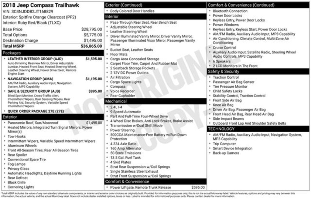 Spitfire Orange Clearcoat 2018 Jeep Compass Trailhawk 4WD 9-Speed Automatic 2.4L I4 FRESH OIL CHANGE, NEW PA INSPECTION, PROFESSIONAL DETAIL, 4WD.