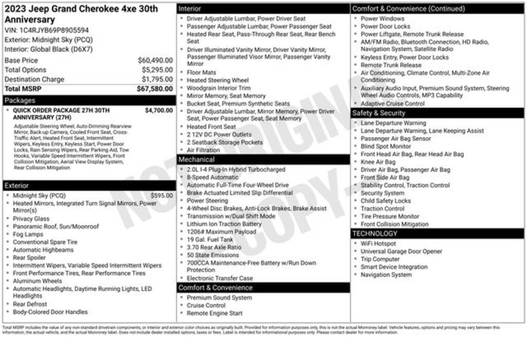 Midnight Sky 2023 Jeep Grand Cherokee 4xe 4WD 8-Speed Automatic 2.0L I4 DOHC 2.0L I4 DOHC, 4WD.