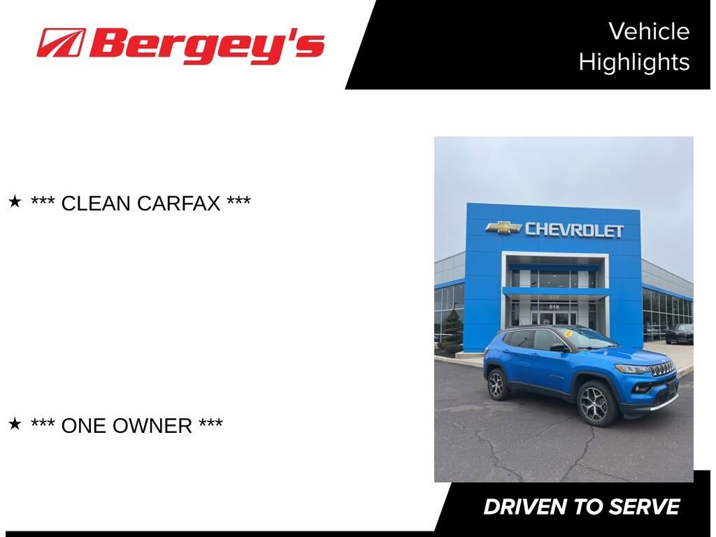 Discover the perfect blend of style, capability, and technology with the 2024 Jeep Compass Limited. This exceptional SUV is designed to elevate your driving experience, offering a harmonious balance of performance, comfort, and convenience.Boasting a sleek Hydro Blue Pearlcoat exterior, the Compass Limited commands attention on the road. Its striking appearance is complemented by a host of premium features, including:- CLEAN CARFAX- ONE OWNER- 10.1 Touchscreen Display- 4G LTE Wi-Fi Hot Spot- Heated Steering Wheel- Leatherette Seats- Heated Front SeatsUnder the hood, the Compass Limited is powered by a robust 2.0L I4 DOHC engine paired with an 8-Speed Automatic transmission and 4-wheel drive, delivering an impressive balance of power and efficiency with an EPA-estimated 24 MPG in the city and 32 MPG on the highway.This Jeep Compass Limited has been meticulously maintained and is now available for your consideration. With its low mileage of 55,468, this vehicle is a true testament to Jeep's commitment to quality and durability.Certified by our expert technicians, this Compass Limited has undergone a comprehensive inspection to ensure it meets the highest standards of performance and safety. You can drive with confidence, knowing that this SUV has been thoroughly evaluated and is ready to provide you with years of reliable service.Experience the exceptional capabilities and refined features of the 2024 Jeep Compass Limited. Discover how this versatile and well-equipped SUV can enhance your driving adventures. Contact us today to schedule a test drive and see for yourself why the Compass Limited is the perfect choice for your next vehicle.