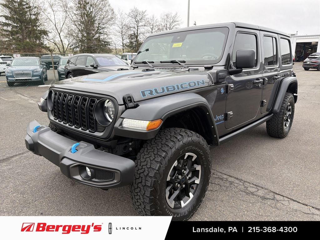2024 JEEP WRANGLER 4XE UNLIMITED RUBICON HARD TOP 2.0L 4WD w/ SAFETY, CONVENIENCE, & TECHNOLOGY PKG! ONE OWNER! CLEAN CARFAX! ORIGINAL MSRP: $71,285.00! ALPINE PREMIUM AUDIO, NAVIGATION, HEATED STEERING WHEEL, HEATED SEATS! BALANCE OF FACTORY WARRANTY! PA State Inspection & First Oil Change At Bergey's! Granite Crystal Metallic Clear-Coat Exterior, Black Interior. 2.0L I4 DOHC DI Turbo Plug-In Hybrid Engine, 8-Speed Automatic 8P75PH PHEV Transmission, Rock-Trac Heavy-Duty Full-Time 4WD System, Tru-Lok Front And Rear Axles, 4.10 Rear Axle Ratio, Electronic Sway Bar Disconnect, Performance Suspension, Regenerative Braking System, Electric Power Steering, 4-Wheel Disc Anti-Lock Brakes, Electronic Stability Control, Hill Start Assist, Selec-Speed Control, Adaptive Cruise Control With Stop, Full-Speed Forward Collision Warning Plus, Advanced Brake Assist, Blind Spot Monitoring With Rear Cross Path Detection, ParkSense Front And Rear Park Assist System, ParkView Rear Back-Up Camera, Remote Start System, Keyless Entry, Push Button Start, Universal Garage Door Opener, Uconnect 5 NAV With 12.3-Inch Touchscreen Display, Apple CarPlay & Android Auto, SiriusXM Radio Ready, Integrated Voice Command With Bluetooth, 4G LTE Wi-Fi Hotspot Capability, Premium Audio System, Dual-Zone Automatic Climate Control, Heated Front Seats, Heated Steering Wheel, Premium Cloth Low-Back Bucket Seats, Power Windows With One-Touch Down, Air Conditioning With Automatic Temperature Control, LED Premium Reflector Headlamps, Automatic Headlamps, Daytime Running Lamp LED Accents, Fog Lamps, Deep Tint Sunscreen Windows, Variable Intermittent Wipers, Black 3-Piece Hard Top, Rear Window Defroster, Rear Window Wiper/Washer, Performance Satin-Black Grille By Mopar, 17-Inch Machined Wheels With Black Pockets, Off-Road Plus Mode, Steel Front And Rear Bumpers. Financing Available! Extended Service Contracts Available! Please Call Or Email To Confirm Vehicle Availability. Check Out Our Website For The Complimentary CARFAX Report!