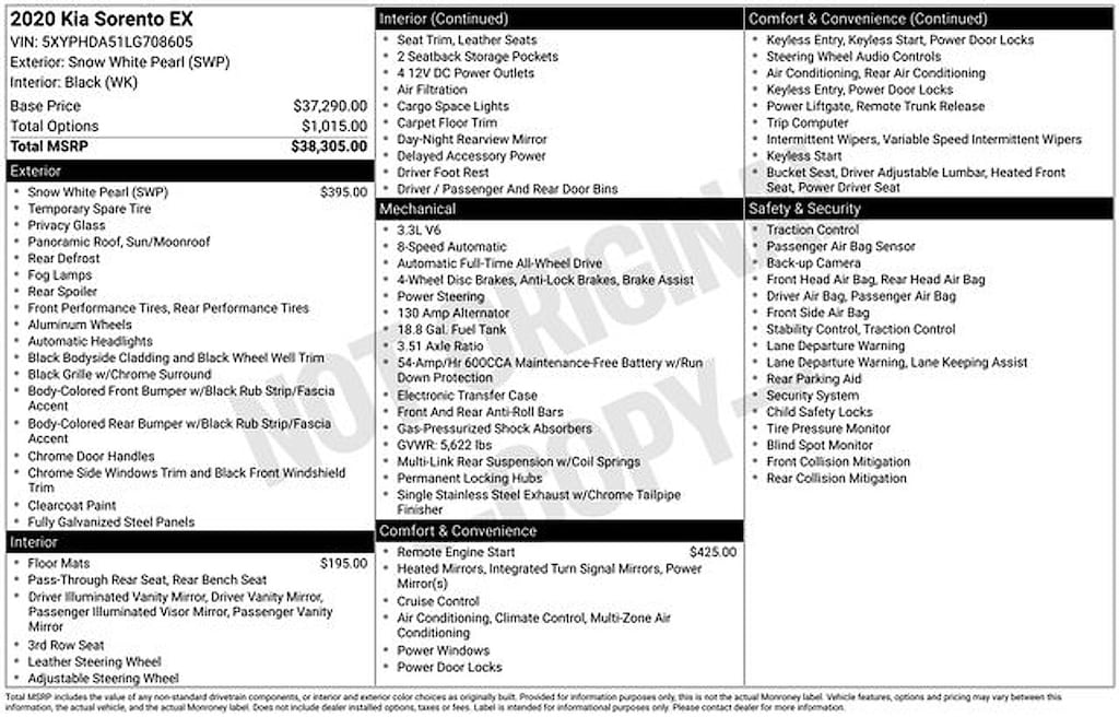 Snow White Pearl 2020 Kia Sorento EX AWD 8-Speed Automatic V6 AWD.