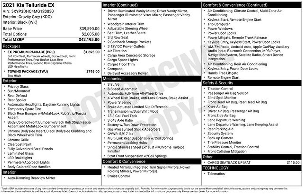Certified. Gravity Gray 2021 Kia Telluride EX AWD 8-Speed Automatic 3.8L V6 DGI DOHC Dual CVVT