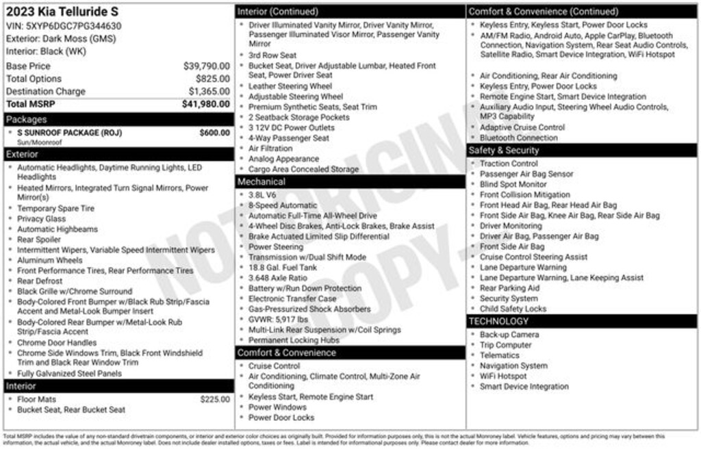 Dark Moss 2023 Kia Telluride S AWD 8-Speed Automatic 3.8L V6 DGI DOHC Dual CVVT