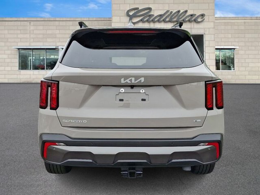 New Price! AWD, 3.316 Axle Ratio, 3rd row seats: split-bench, 4-Wheel Disc Brakes, 6 Speakers, ABS brakes, Air Conditioning, Alloy wheels, AM/FM radio: SiriusXM, Apple CarPlay & Android Auto, Auto High-beam Headlights, Auto-dimming Rear-View mirror, Automatic temperature control, Brake assist, Bumpers: body-color, Carpeted Floor Mats, Delay-off headlights, Driver door bin, Driver vanity mirror, Dual front impact airbags, Dual front side impact airbags, Electronic Stability Control, Emergency communication system: 911 Connect, Exterior Parking Camera Rear, Four wheel independent suspension, Front anti-roll bar, Front Bucket Seats, Front Center Armrest, Front dual zone A/C, Front fog lights, Front reading lights, Fully automatic headlights, Heated door mirrors, Heated Front Bucket Seats, Heated front seats, Illuminated entry, Knee airbag, Leather Shift Knob, Leather steering wheel, Low tire pressure warning, Navigation System, Occupant sensing airbag, Outside temperature display, Overhead airbag, Overhead console, Panic alarm, Passenger door bin, Passenger vanity mirror, Power door mirrors, Power driver seat, Power Liftgate, Power passenger seat, Power steering, Power windows, Radio data system, Radio: AM/FM Audio System, Rear anti-roll bar, Rear reading lights, Rear side impact airbag, Rear window defroster, Rear window wiper, Remote keyless entry, Security system, Smart Key w/ Push Button and Remote Start, Speed control, Speed-sensing steering, Split folding rear seat, Spoiler, Steering wheel mounted audio controls, SynTex Artificial Leather Seat Trim, Tachometer, Telescoping steering wheel, Tilt steering wheel, Traction control, Trip computer, Turn signal indicator mirrors, Variably intermittent wipers, Wheels: 8.5J x 20" Gloss Black X-Line Alloy, AWD. Clean CARFAX. CARFAX One-Owner. Road Rider Brown 2024 Kia Sorento X-Line EX AWD 8-Speed DCT 2.5L I4 DGI Turbocharged DOHC 16V LEV3-SULEV30 281hp