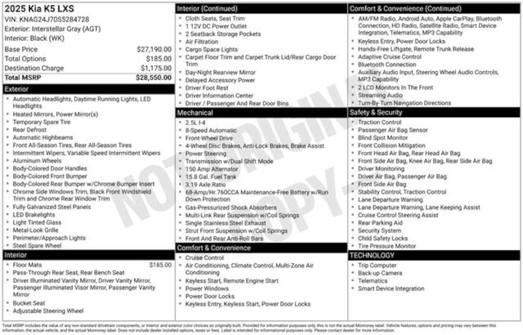 Interstellar Gray 2025 Kia K5 LXS FWD 8-Speed Automatic I4