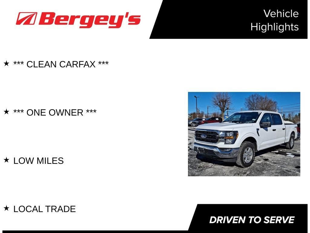 Command the road with confidence in this rugged and refined 2023 Ford F-150 XLT, now available at Bergeys Chevrolet in Colmar, PA! Built for power, capability, and everyday versatility, this F-150 XLT delivers the strength you expect from Americas best-selling truck complete with modern tech, a comfortable cabin, and bold styling. If you're searching for a used Ford F-150 in Colmar, PA, this well-equipped XLT is ready for work, adventure, and everything in between. Visit Bergeys Chevrolet your trusted used truck dealership in Colmar and discover a premium F-150 thats built to get the job done right!